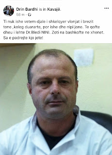 Doktori i njohur Drin Bardhi ka shprehur ngushëllimet e për ndarjen e parakohshme nga jeta e mikut dhe kolegut të tij Dr. Bledi Nini.